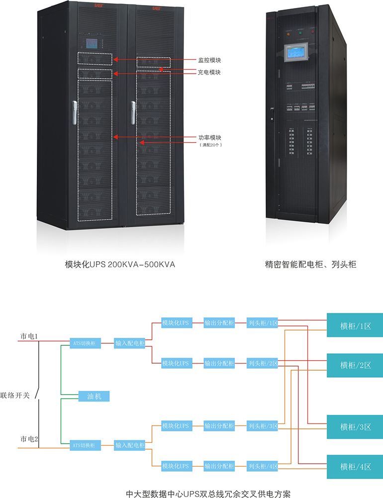 電源分配列柜簡(jiǎn)稱列頭柜,分普通列頭柜和精密智能配電柜本設(shè)備主要用于通信機(jī)房及站傳輸設(shè)備機(jī)房,安裝在設(shè)備的列頭和列尾,與條形架通信機(jī) 列、光端機(jī)列等配套,通過本設(shè)備中的配電裝置,為通信設(shè)備進(jìn)行電源分配。精密列頭柜是機(jī)房配電在整個(gè)機(jī)房中起到至關(guān)重要的一環(huán),但是也是很容易被忽視的一關(guān),現(xiàn)在的機(jī)房設(shè)備服務(wù)器、空調(diào)、UPS、風(fēng)機(jī)等都已經(jīng)做到了隨時(shí)可以監(jiān)控的這一步,而機(jī)房配電的監(jiān)控恰恰是一個(gè)空白,傳統(tǒng)的配電柜也只是幾個(gè)表頭加上幾路所需的開關(guān)而已,即使做動(dòng)環(huán)監(jiān)控也只是在配電柜里進(jìn)行二次改造(增加各種模塊)。這樣既繁瑣而且效果也不大。機(jī)房配電回路一般是雙路市電接入,首先進(jìn)市電配電箱,一部分給UPS,一部分給空調(diào)和照明、普通插座,UPS下端再進(jìn)UPS配電柜,分配到各個(gè)列頭柜,經(jīng)列頭柜后接入各機(jī)柜PDU再到負(fù)載。列頭柜電源進(jìn)線一般選用雙電源進(jìn)線,當(dāng)一路電源系統(tǒng)故障斷電時(shí),另一路電源自動(dòng)投入以保證供電連續(xù)性。為實(shí)現(xiàn)短路、過載保護(hù),在雙電源前使用塑殼斷路器,提供短路、過載保護(hù),還具備隔離功能,方便檢修。箱內(nèi)一般需設(shè)置電氣火災(zāi)監(jiān)控系統(tǒng),電氣火災(zāi)探測(cè)器和監(jiān)控單元。由于機(jī)房設(shè)備對(duì)雷擊非常敏感,所以一般要選配浪涌保護(hù)器。列頭柜的主要出線回路可以選擇塑殼斷路器,如果有需要,可以加裝漏電模塊。機(jī)房設(shè)備的供電連續(xù)性非常重要,列頭柜進(jìn)線處配置有電力參數(shù)測(cè)量?jī)x,能實(shí)時(shí)監(jiān)視電氣參數(shù)水平,及時(shí)發(fā)送故障報(bào)警信號(hào),提前發(fā)現(xiàn)潛在的故障隱患,同時(shí)監(jiān)視用電能耗水平。列頭柜柜內(nèi)可按需選配配電模塊,模塊化結(jié)構(gòu)便于拆裝、維護(hù),模塊允許用戶快速、靈活的增加和刪減回路,滿足機(jī)房用電量的擴(kuò)容需求。